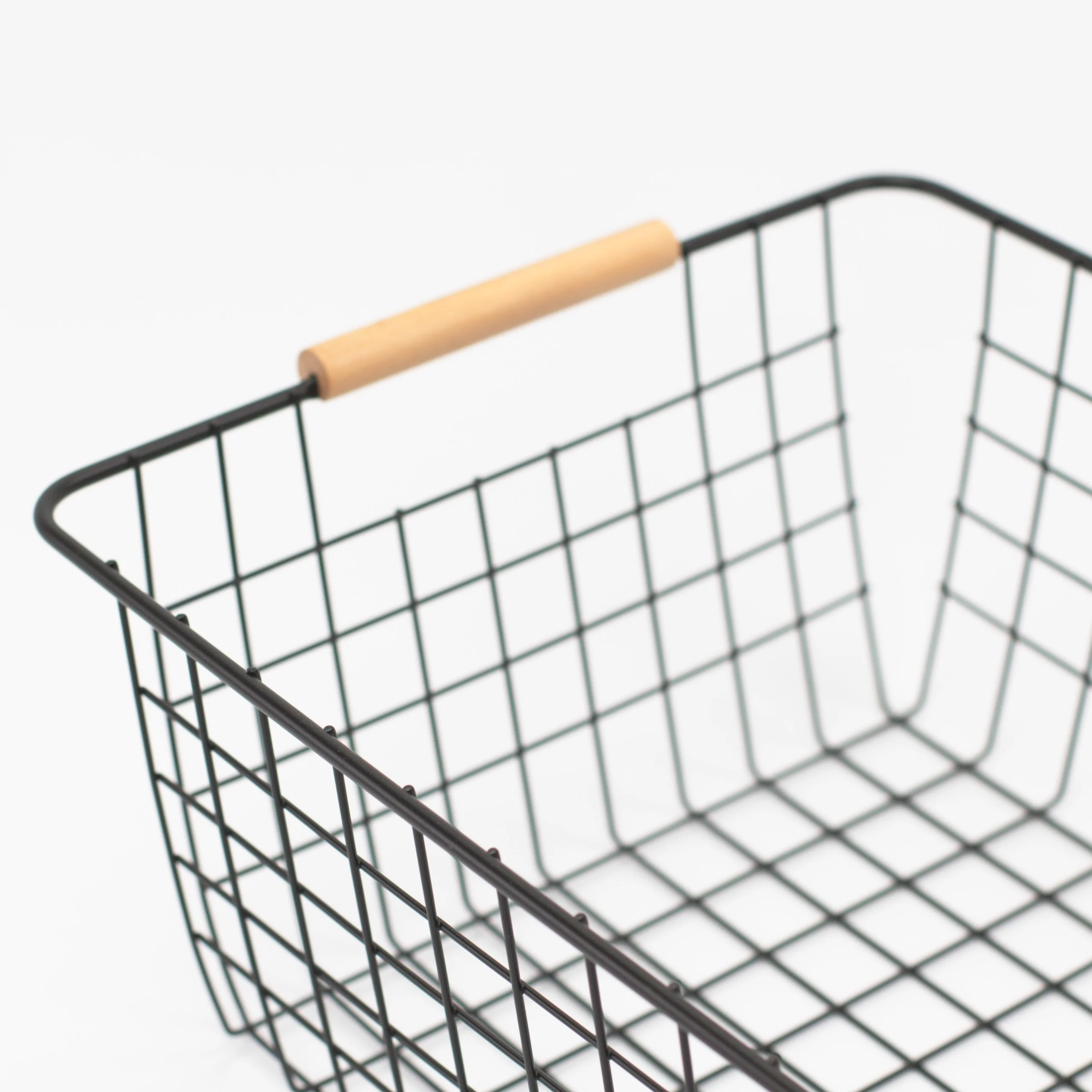 Grid Metal Basket with Bamboo Handles