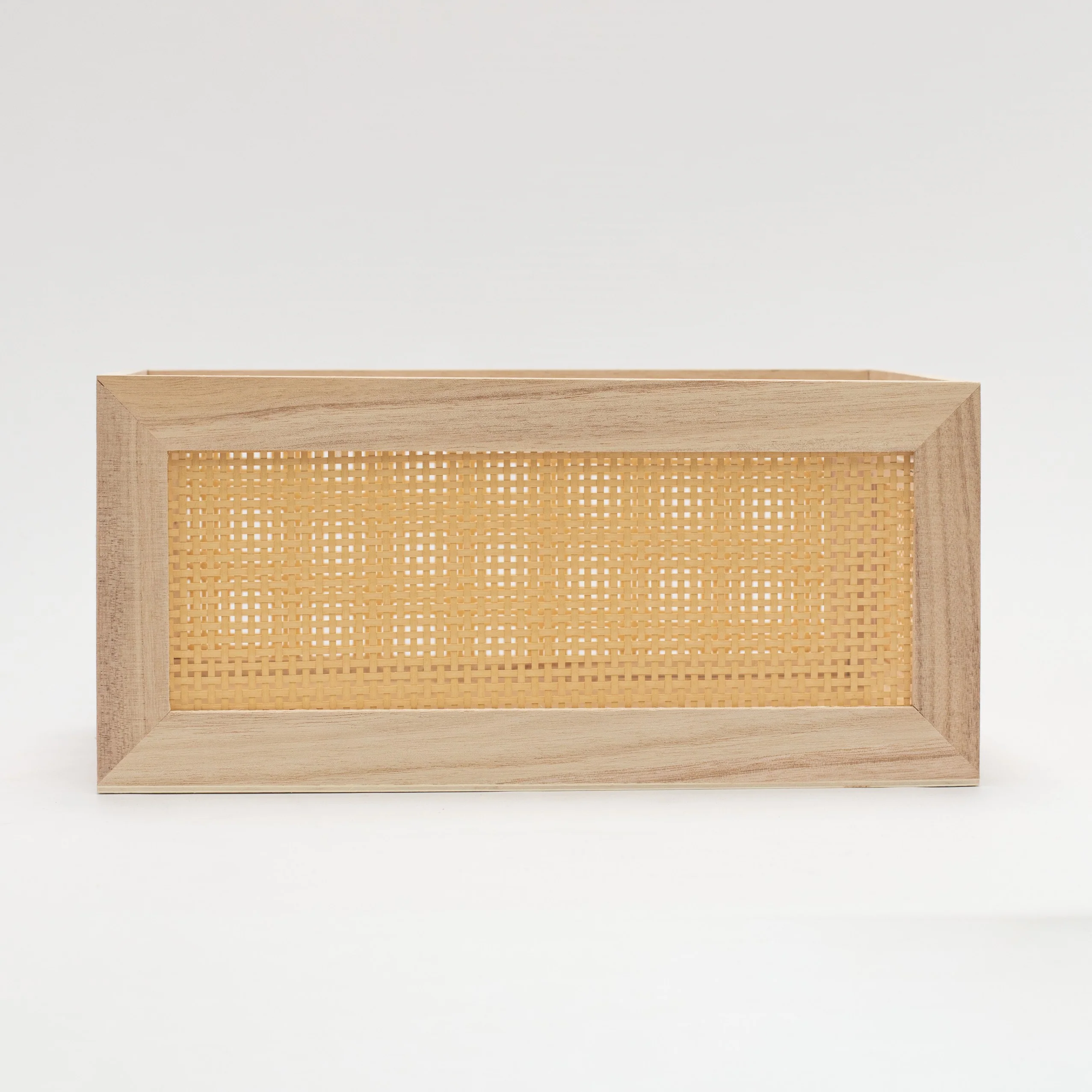 Each basket is expertly made with a light wood frame and woven bamboo panels, combining function with timeless design. Built-in cut-out handles make them easy to carry and reposition, whether you're decluttering a shelf, styling your pantry, or creating a calming corner in any room.