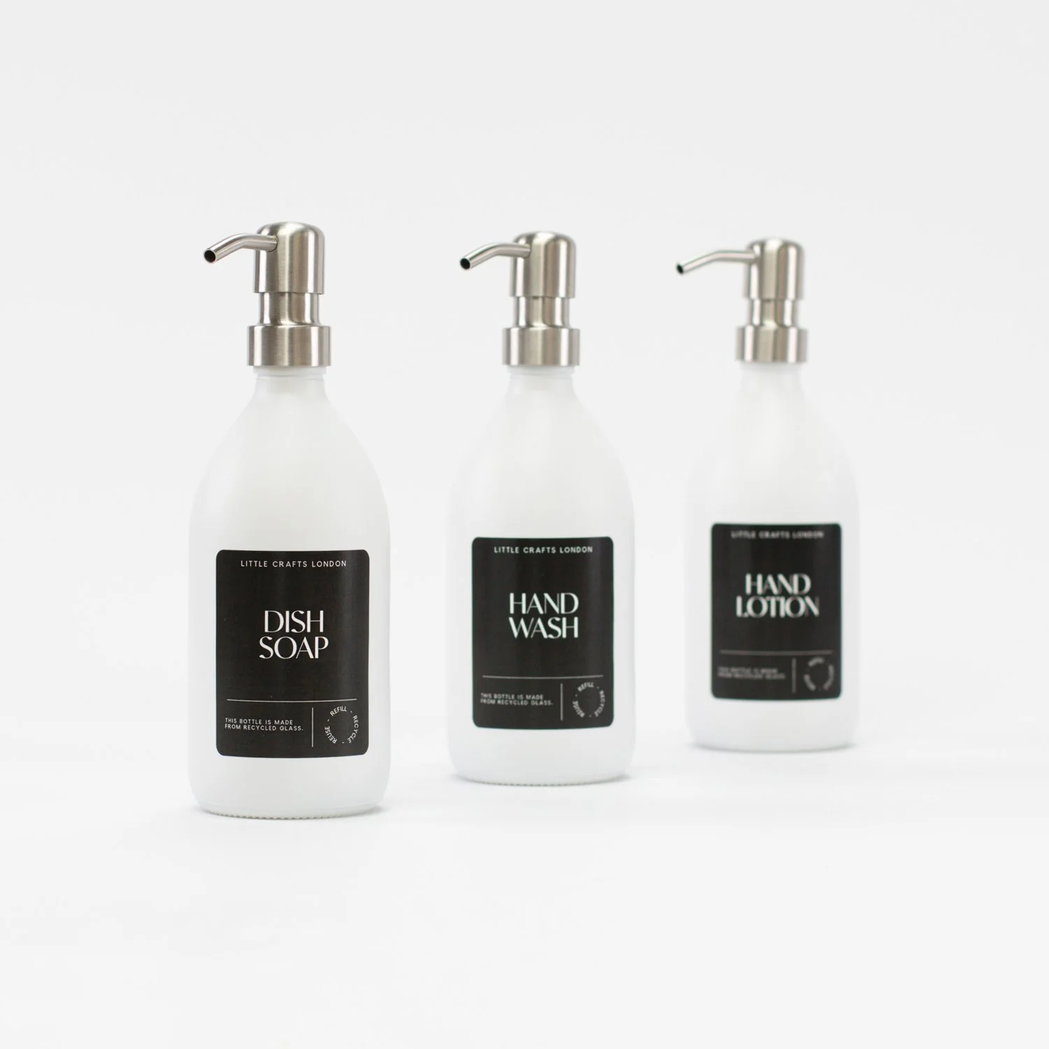 500ml Milky White Glass Bottle with Stainless Steel Pump & White Label